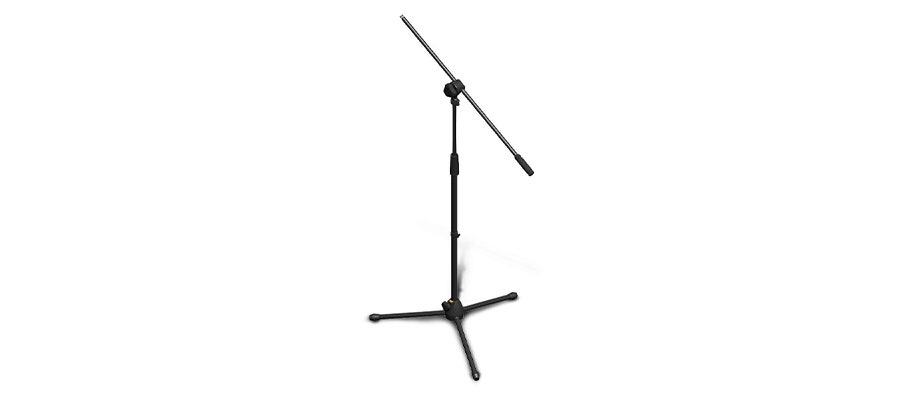 Mikrofonstativ med tre ben og bom. Sort.