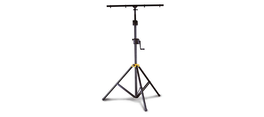Dobbelt krydsstativ med patenteret låsemekanisme for sikker højdeindstilling.