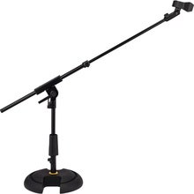 Professionelt mikrofonstativ med ekstratung fod af støbejern, Quick-N-EZ greb og og teleskopbom. Sort.