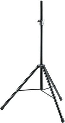 Lys/højttalerstativ med trinløs højdejustering og kraftige, runde ben.