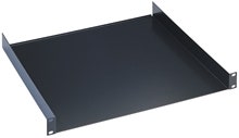 Udtræksrackhylde med ekstra rackskinner til stabil montering i bagkant eller siden af rack.