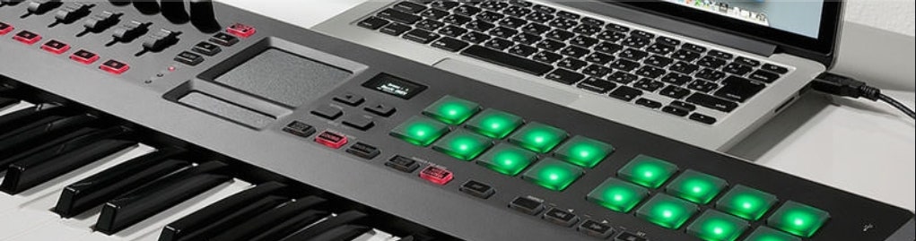 Kompakt USB/MIDI controller m/25 anslagsfølsomme knaptangenter, 8 anslagsføslomme pads, 8 programmerbare...