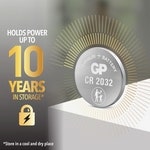 GP højtydende lithium-møntbatterier CR2032 leverer 30 % mere strøm* til dine enheder som bilnøgler, fjernbetjeninger, smart watches, blodsukkermonitorer, smart home-enheder, IoT-enheder, dør- og vinduessensorer, og alle andre enheder, der benytter CR2032 batterier.