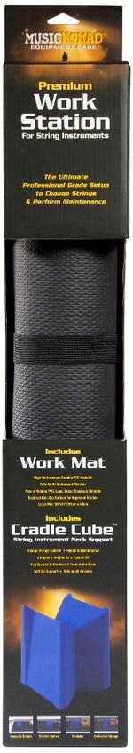 MusicNomad’s Premium Work Mat and 5-in-1 Cradle Cube neck support will help you do repairs and maintenance on your string instrument safely and securely. Laying your instrument on a towel or directly on a hard surface may cause it to become damaged, but the large, high-performance work mat is made specifically for musical instruments. Developed using a special TPE material that is safe on all finishes, the work mat is odorless and contains no rubber, PVC, lead, latex, dioxins, or chloride. The specially designed, textured, anti-slip surface provides traction while you work, and is durable yet soft to help avoid scratching your prized instrument. The Cradle Cube neck support features five varying heights and angles, providing the perfect companion to the work mat for doing repairs and maintenance. Made of an innovative gel material, the Cradle Cube gently yet fully supports either side of the neck. MusicNomad has developed a better way to work on your musical instrument.