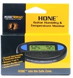 Protecting your guitar just got easier. MusicNomad, the leader in equipment care, has developed HONE, a patented humidity & temperature monitor that is accurate, reliable and easy to use. Perfect for Acoustic Guitars, Electric Guitars and other String Instruments because monitoring your instrument's environment is critical to ensure you stay within the manufacturer's warranty and to protect your prized instrument from drying, warping, shrinking or cracking. HONE will determine if you need to use a humidifier, de-humidifier or neither. Our innovative design allows you to customize how you want to measure. The coolest feature is it easily clips directly onto your guitar strings. You can also place it inside your case or any room you want to monitor. Own a MusicNomad Humitar Humidifier (sold separately)? Remove the existing lid and clip in HONE to start measuring the humidity & temperature. So many ways to HONE into the Safe Zone. That's MusicNomad quality - raising the bar in equipment care.
