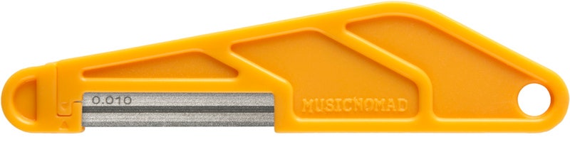 MusicNomads patentanmeldte sadelfile er belagt med en revolutionerende diamantbelægning og et rundt "strengeformet" bladdesign, hvilket resulterer i helt glatte præcisionssnit. De skærer og polerer slidser på én gang og hopper ikke ud af skæret som andre filer kan have tendens til. Den industrielt påførte, jævne diamantbelægning skærer og polerer alle de mest almindelige sadelmaterialer såsom nylon, ben, grafit og TUSQ. De har også et ergonomisk håndtag som giver god komfort og kontrol over dit snit, og du kan tage bladet ud af håndtaget hvis det er nødvendigt.