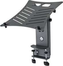 Sammenklappeligt laptop-stativ til montering på bordplade til DJ's, studier, mm.