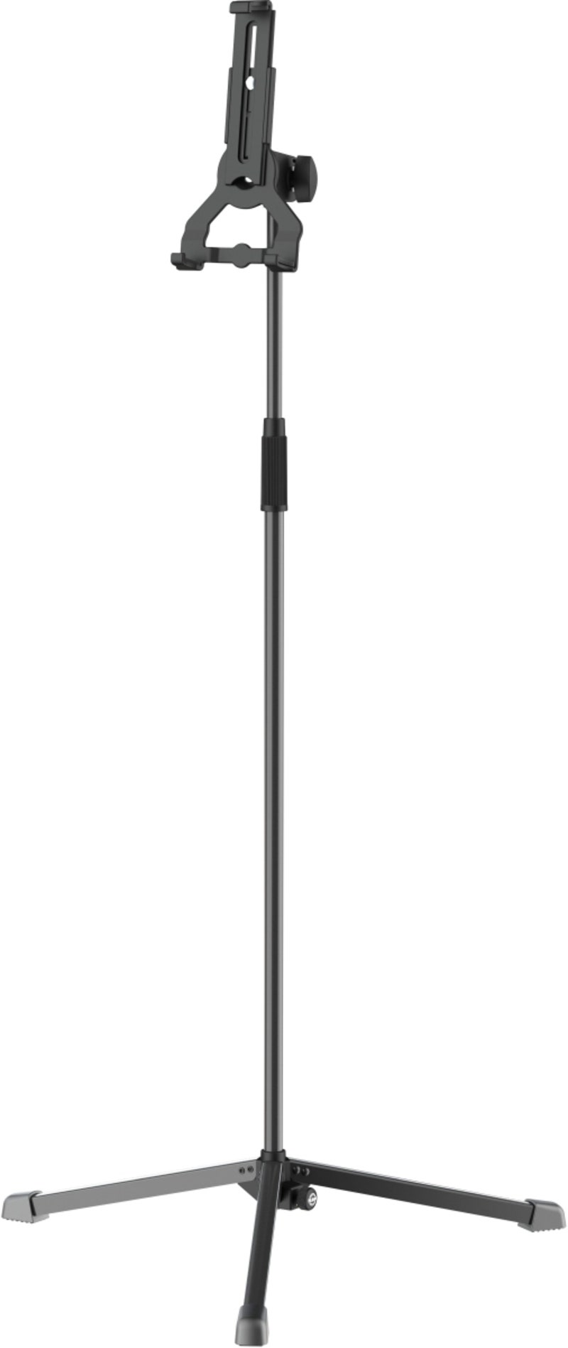 Tablet-stativ af stål med 2-delt telskop og universal-holder.