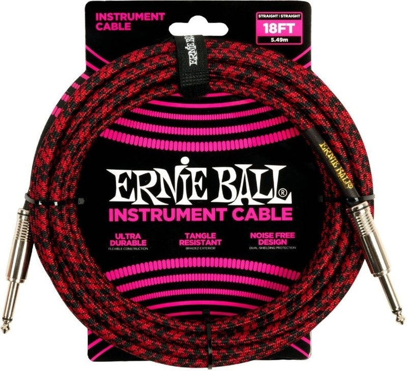 Vævet højkvalitets instrumentkabel - rød/sort, 5,4m (18 fod)