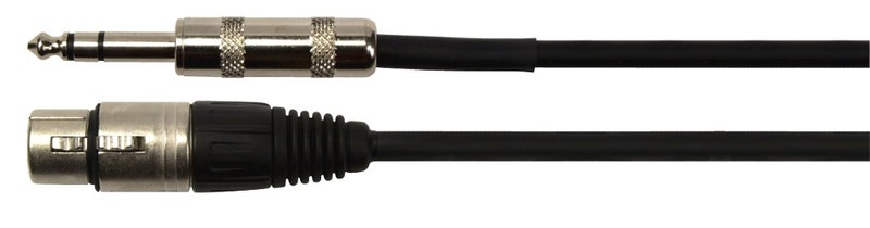 Sort kabel med balanceret hun-XLR i metal og aflastning af gummi. Balanceret jackstik i metal og aflastning af gummi. 1m