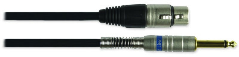 Sort kabel med stik i metal og trækaflastning i sort plast og metal.