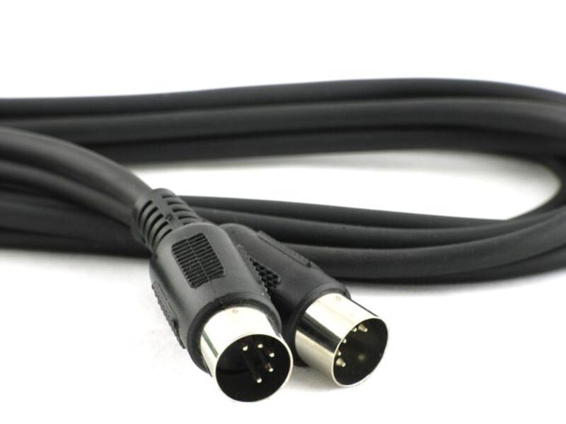 Blødt og fleksibelt MIDI-kabel med 5-pol DIN stik. Sort 9m