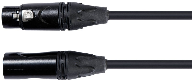 Sort kabel med hun/han-XLR i metal og aflastning i gummi. 0,9 m.