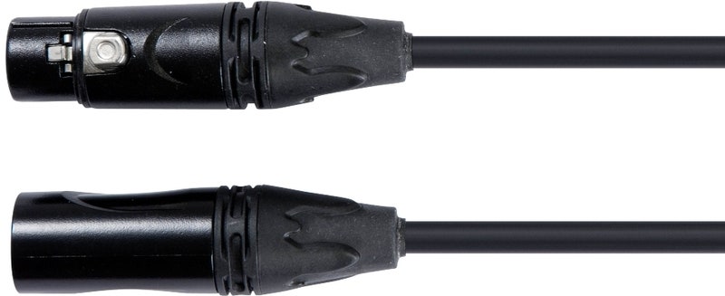 Sort kabel med hun/han-XLR i metal og aflastning i gummi. 3 m.
