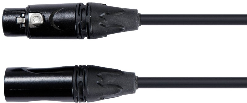 Sort kabel med hun/han-XLR i metal og aflastning i gummi. 4,5 m.
