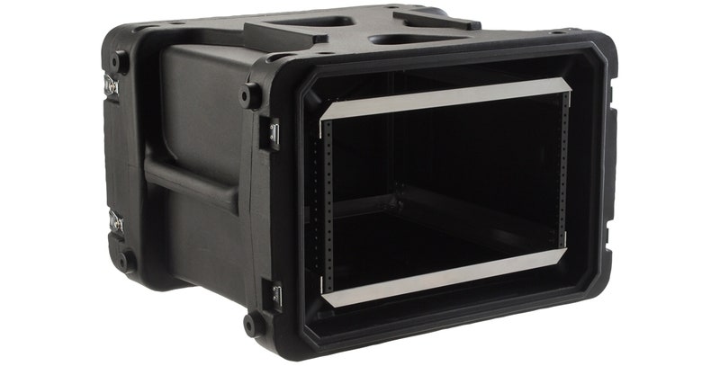 En frithængende ramme hviler på støddæmpere i alle otte hjørner af disse racks for at klare stød og vibrationer fra alle tre aksler. Det luftige design, som er udviklet med denne konstruktion, bidrager til en naturlig airconditioning. Shockmount rack er bygget af samme slagfaste materiale som standardrackene og har en indvendig dybde på 50 cm.