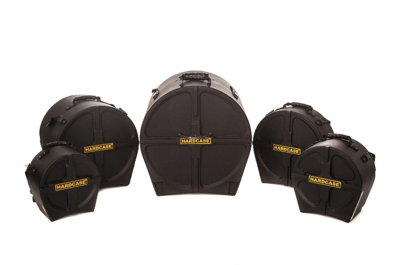 Pre-packed case set including 14" Snare drum, 10" and 12" Tom Toms, 14" Floor Tom, and 20" Bass drum.