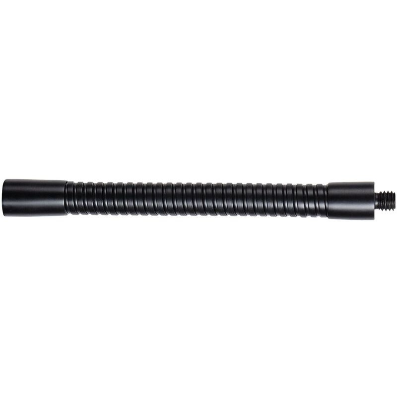 Robust and flexible gooseneck. Durable steel material with black powder coating. The connection threads are 3/8” on both sides, one inside/one outside. The length is 150 mm with a diameter of 15 mm. Weight: 0.125 kg.