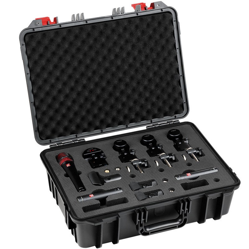 V PACK ARENA BLACK består af en V KICK til din stortromme, tre V BEATs og V CLAMPS til dine tammer, en V7 X til din lilletromme og et par sE8 kondensatorer til overhead. Alle mikrofoner og tilbehør leveres i en robust flightcase af hærdet plast med et ekstra rum til din yndlings hi-hat mikrofon. Denne helt sorte udgave med røde vindshætter vil skille sig ud på ethvert trommesæt!
