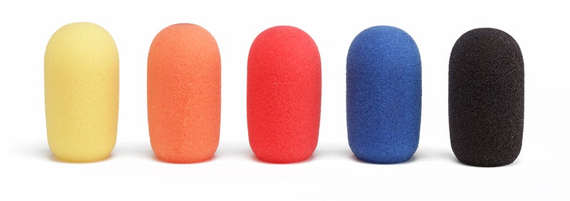 5-pack of foam headset microphone windscreens Reduces occurances of vocal popping and wind noise Fits many popular headset microphones (including Samson Qe, Qv) Includes five windscreens, one each of the following colors: Red, Yellow, Blue, Orange, Black