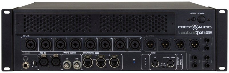 Tactus™ Stand-alone server med 8 ind- og 8 udgange som afvikler Waves eMotion LV1 mixersoftware. En eller flere Tactus™ .STAGE kan kobles til.