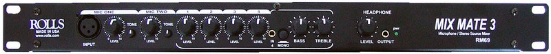 RM69 MixMate 3 is six channel, single rack space, electronic audio mixer with two microphone inputs and four stereo line inputs. The unit is ideal for installs such as small restaurants or night clubs where space is a consideration, without compromising audio quality. A convenient front-panel 3.5mm jack has been included for connection to any standard MP3 player\\\'s headphone output.