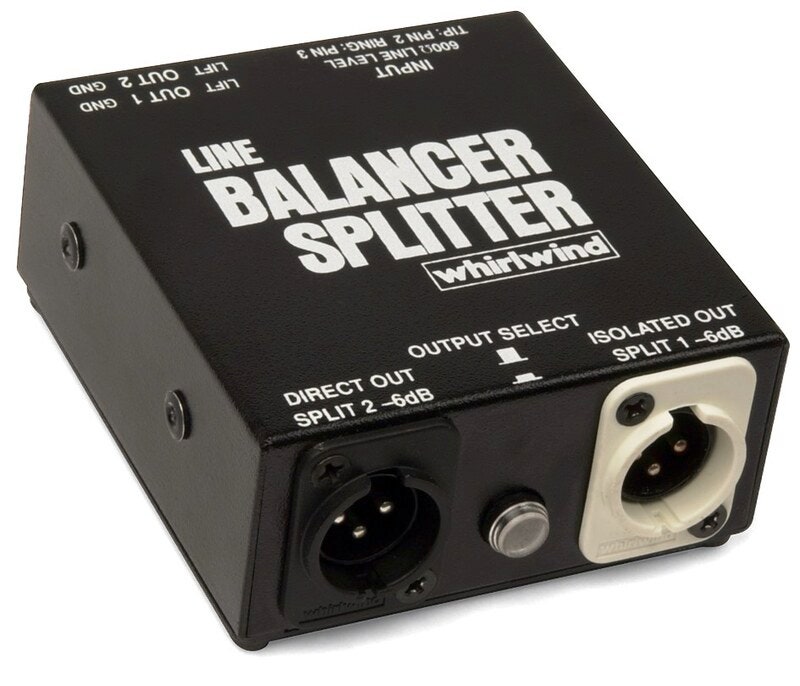Split- og DI-box. Instrument til mixer. Indgang: D3F/jack. Udgang 1: D3M, omskifter for "direct" eller balanceret. Udgang 2: Balanceret D3M.