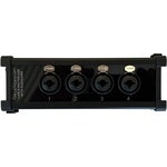 Artikelnummer 3906120XLR Combo to CAT Breakout Box. Supports the transmission of 4-channel audio signals trough a single CAT cable.
