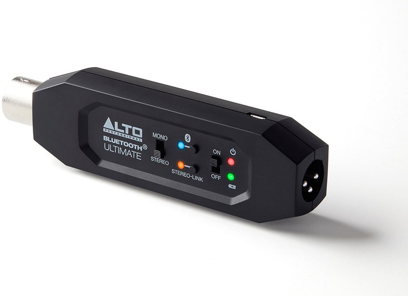 Bluetooth Ultimate er en mono/stereo Bluetooth-modtager, der streamer lyd trådløst til mixere eller aktive højttalere. Med Bluetooth Ultimate kan du hurtigt og nemt tilføje Bluetooth-singaler i både mono og stereo til enhver live lydopsætning. Sæt Bluetooth Total i XLR-indgangen på en mixer- eller højttaleropsætning, par din Bluetooth-enhed, og du er igang! Stopper du her, får du mono-operation. Men BlueTooth Ultimate har en ekstra XLR-udgang, der fungerer som kanal 2 i stereo-opsætninger. Dvs kobler du et XLR-kabel fra denne udgang til højttaler nr. 2 eller næste indgang på mixeren, kan du nu streame i stereo. Du kan også trådløst forbinde to Bluetooth Ultimates og nå endnu flere højttalere. Et indbygget genopladeligt batteri holder Bluetooth Ultimate kørende i over 6 timer. Bluetooth Ultimate er et værdifuldt værktøj, som ingen audioprofessionel bør være foruden.