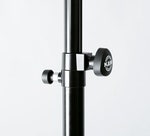 Lys/højttalerstativ i aluminium med fjedrende sikkerhedslås.