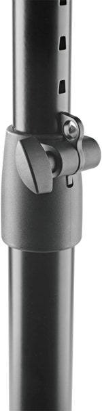 Højttalerstativ af stål med tre ben. Justerbar højde med ringlås mekanisme og mulighed for intern kabelføring.