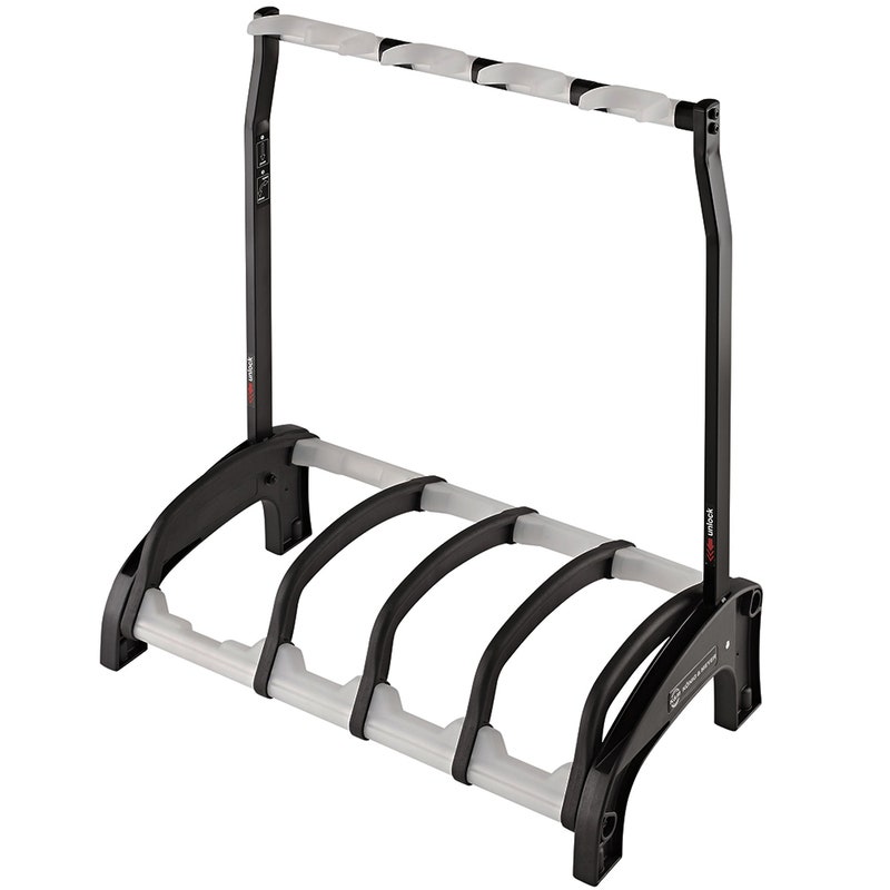 The Guardian keeps one acoustic and 3 electric guitars safe, saves space and keeps instruments clearly arranged for musicians. Special cushioned pads ensure secure, anti-scratch storage of guitars. The flexible protective bars stop the guitars from turning and protect them from unintentional knocks when being picked up or put down. Thanks to its innovative folding mechanism, the Guardian can be carried comfortably and even be stored upright. Highly flexible arms with integrated pick holders protect the guitars and guarantee "unobstructed" strings. Its advantageous slim means that the Guardian can be positioned right next to the wall to save space. In addition, the translucent elements prevent discolouration of nitro lacquer guitars by the stand. An optional caster set 17510 is also available for additional mobility.