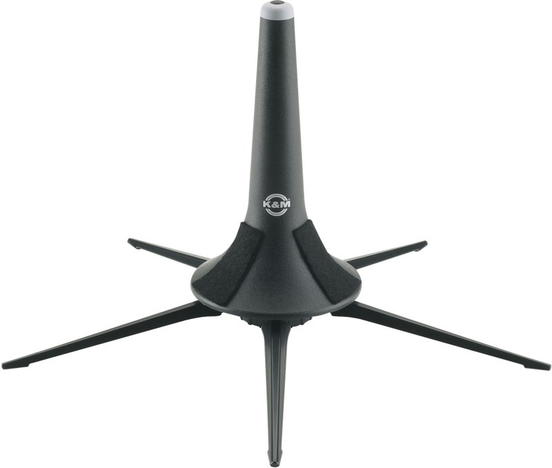 Sammenklappeligt stativ til trompet. Kan transporteres i schallstykket.