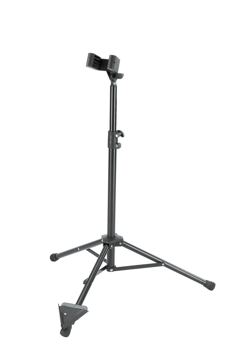 Forbedret design gør dette stativ både elegant, robust, let og nemt at stille op og pakke sammen. Den filtbeklædte holder kan vinkles og indstilles i bredden, så instrumentet holdes sikkert på plads. Den trekantede bundpindsskål gør det nemt at sætte instrumentet i stativet.