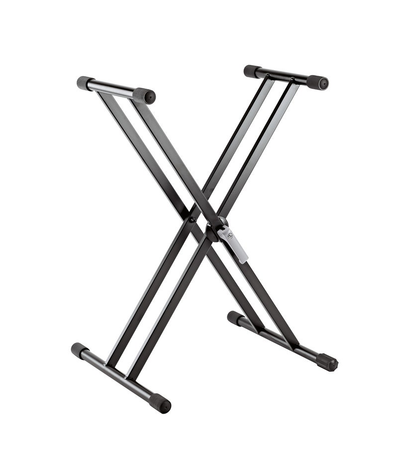 Artikelnummer 25518997Dobbelt x-stativ med center-greb til tunge keyboards.