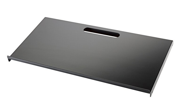 Hylde af aluminium til 18811 overdel til Omega-stativer. Muliggør placereing af mindre enheder. Der er hul til kabelføring og gummilisterne holder hylden på plads og mindsker vibrationer.