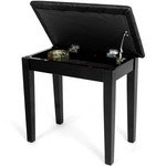 Affordable piano bench with storage under the seat in black finish.