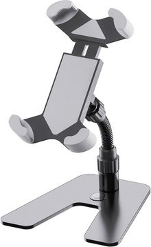 Fleksibel tablet-holder med afstandspind til montering på stativer med diameter på op til 30 mm.