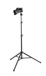 Nyttigt kamerastativ til montering af kompaktkameraer, actionkameraer, webkameraer, miniprojektorer og mobile optagere med 1/4" tilslutningsgevind. Kugleleddet gør, at det monterede udstyr kan drejes 360° og fastgøres i enhver position. Vippe-vinklen kan justeres trinløst op til 90° og bæreevnen er designet til udstyr op til 1 kg. Højden kan frit justeres fra 555 mm til 1355 mm via to teleskopled.