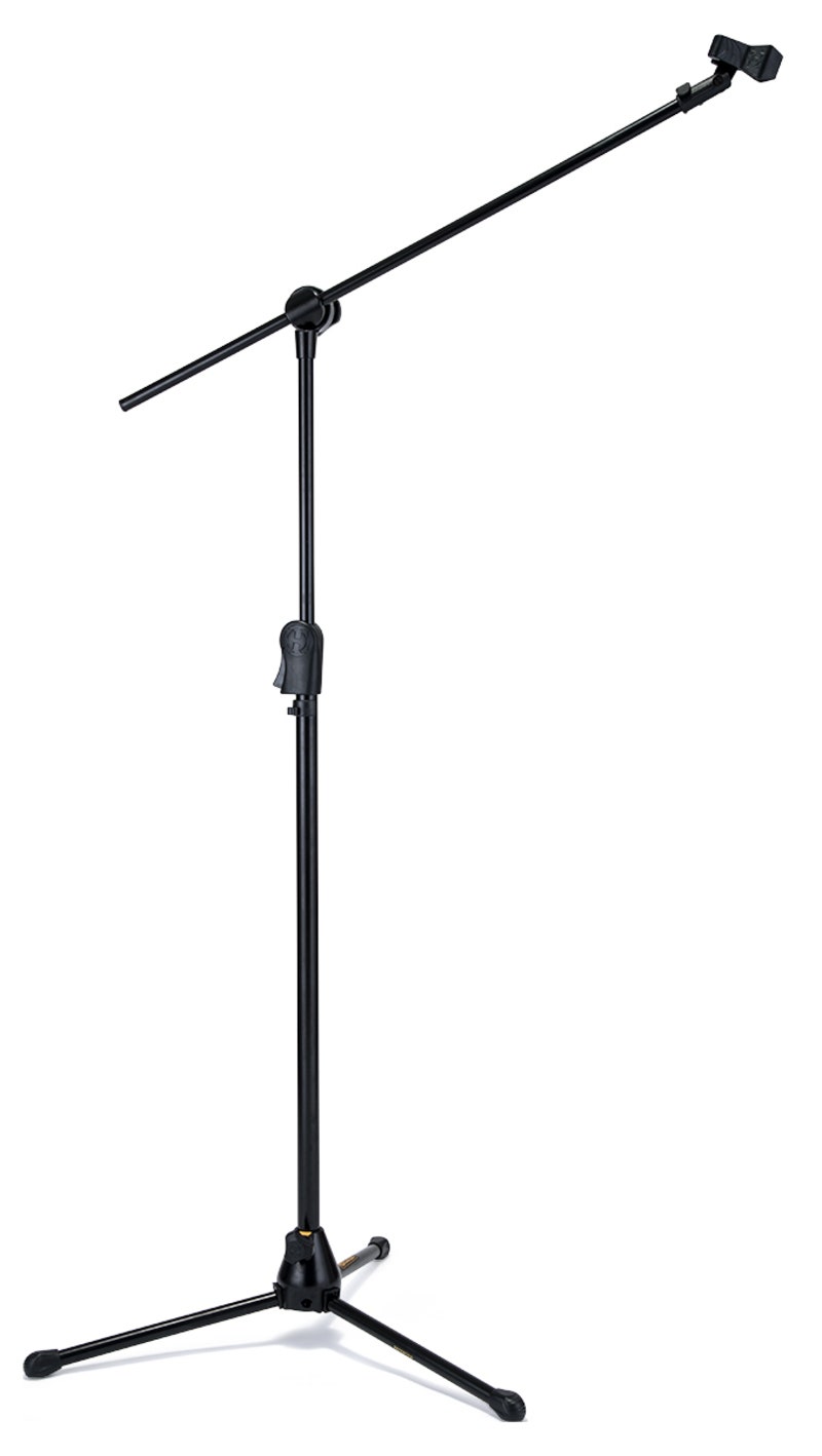 Mikrofonstativ med tre ben og bom. Sort.