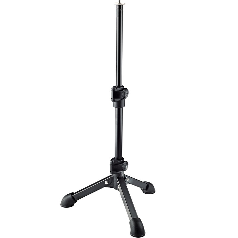 Artikelnummer 25523150-1Let, todelt teleskopbordstativ med enten 1/4" eller 3/8" gevind på toppen. Sort.
