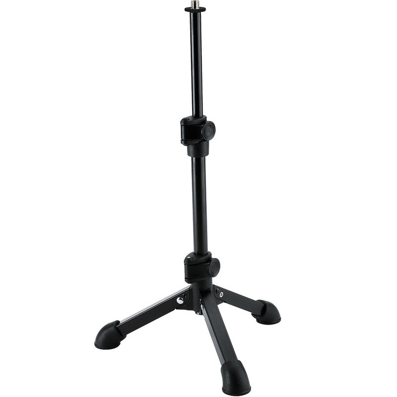 Artikelnummer 25523150-3Kompakt bordmikrofonstativ med teleskop og trefod m/3/8" gevind. Sort.