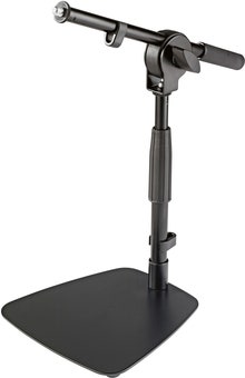 Bord/gulvmikrofonstantiv med rund stålfod. Sort.