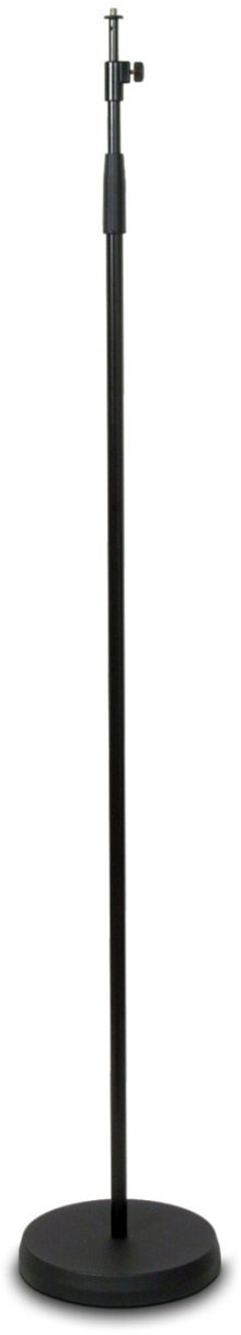 Teleskop-mikrofonstativ med et-hånds justeringsgreb og støbt rund fod. Sort.