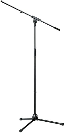 Professionelt mikrofonstativ med ekstratung fod af støbejern, Quick-N-EZ greb og og teleskopbom. Sort.