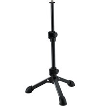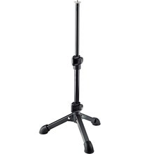 Bordmikrofonstativ med sammenklappelige ben og 3/8"-gevind. Sort.