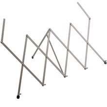 Forniklet harmonika-bordnodestativ. Fylder næsten ingenting i sammenfoldet stand.