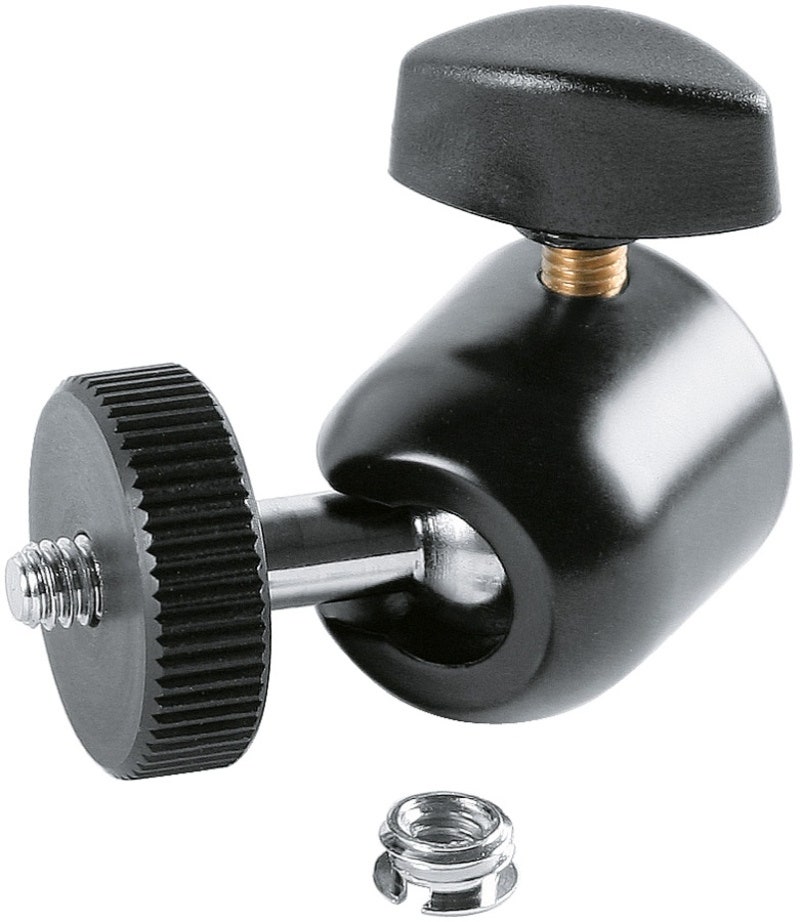 Kugle-led med 3/8" gevind i bunden og 1/4" eller 3/8" gevind i toppen. 1/4".
