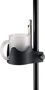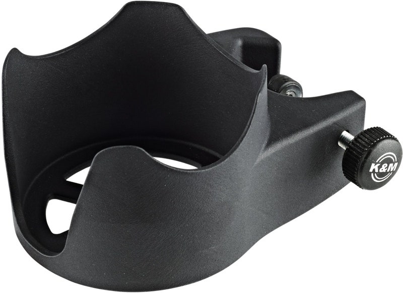 Kopholder af biobaseret plast til flasker, glas og kopper med en diameter på op til 95 mm. K&M's bioplast-serie indeholder over 50% og op til 100% plantebaseret og dermed 100% biologisk nedbrydeligt plastic. GGør noget godt for miljøet mens du slukker tørsten. Monteres på mikrofonstativ og lign. med max 30 mm diameter.