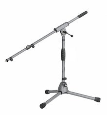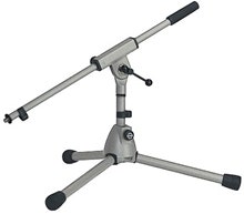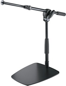 Ekstra lavt mikrofonstativ med sammenklappelige ben og bom. Matgrå finish og vred af gummi.